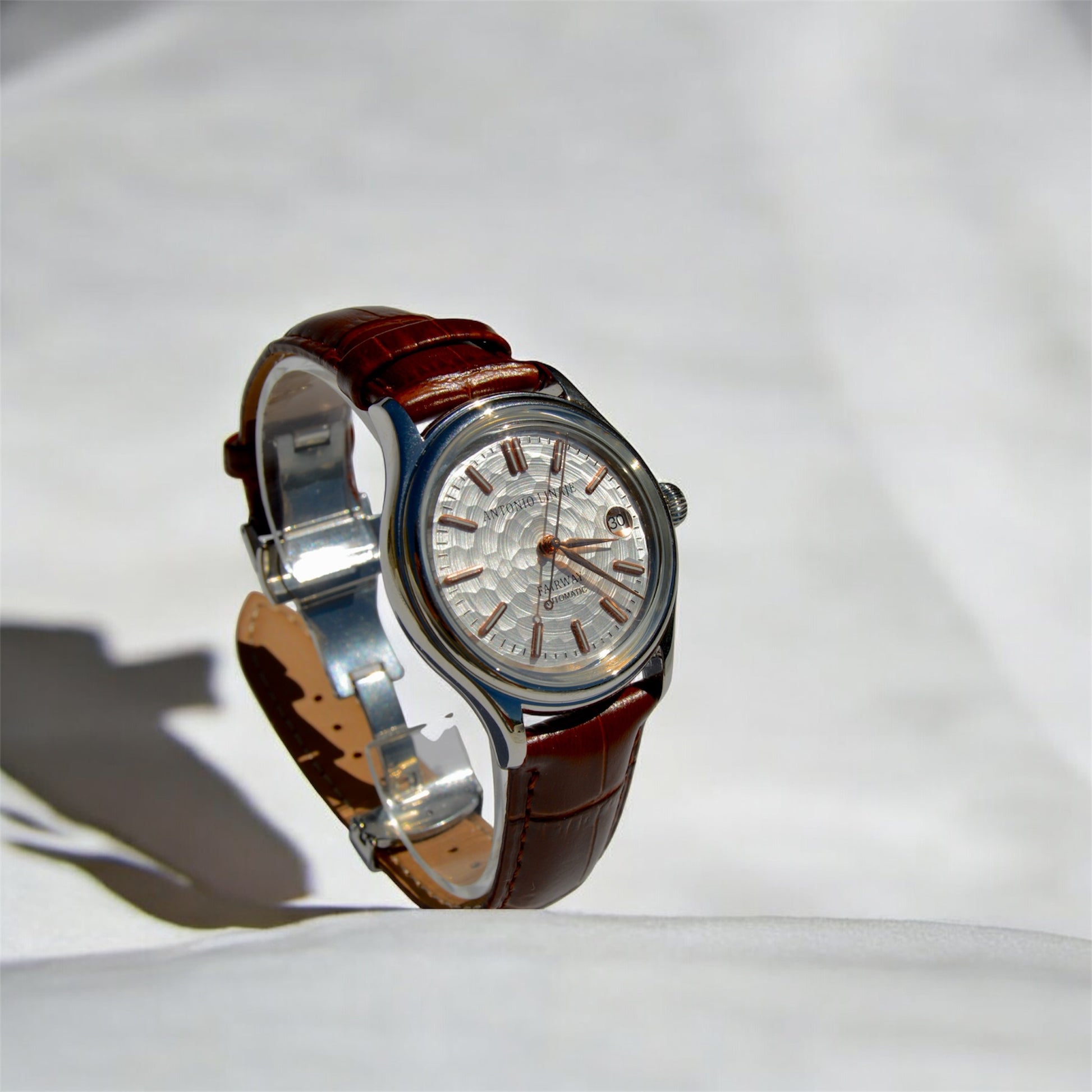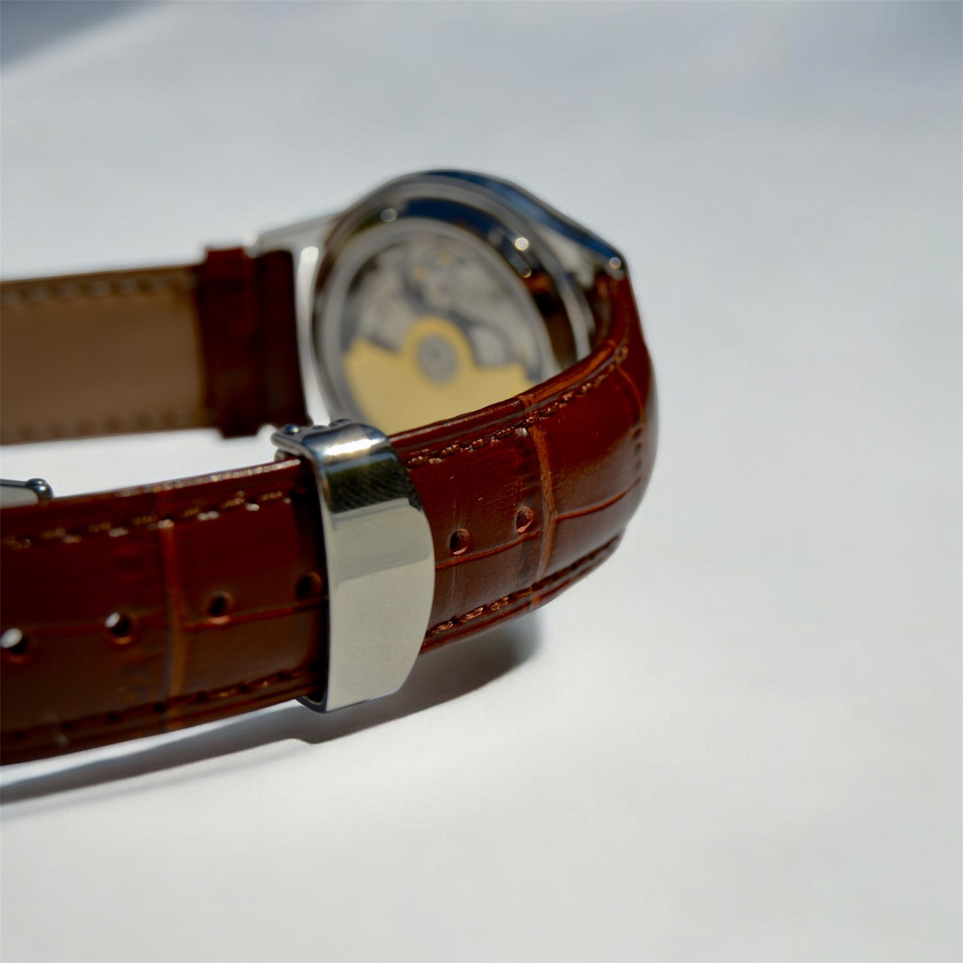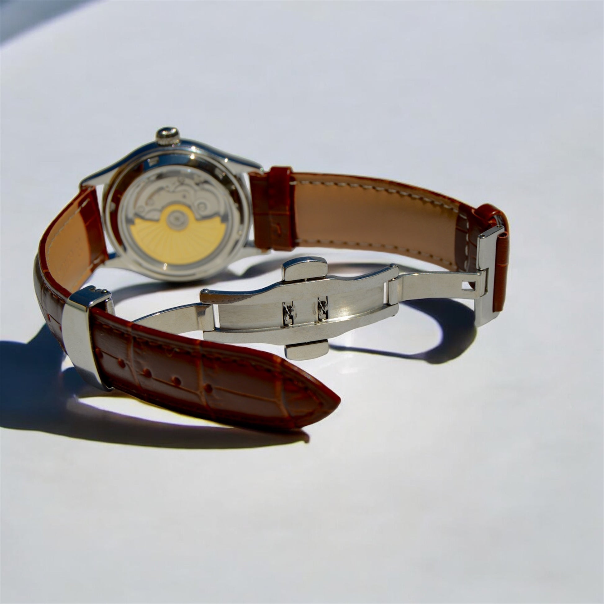 - Correa: Cuero auténtico natural, suave y elegante, diseñada para acompañar cada ocasión.
